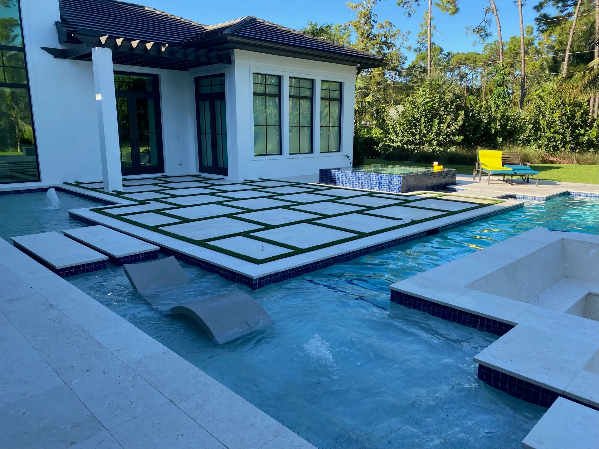Infinity edge designs for waterfront and elevated sites — structural support, overflow collection troughs, recirculation systems, and edge detailing engineered for SWFL conditions